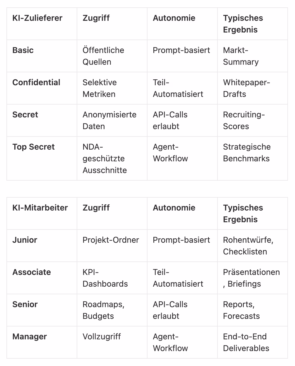 Mit dieser Matrix weißt du genau, welcher KI-Assistent auf welche Informationen zugreifen darf und wie autonom er agieren kann.