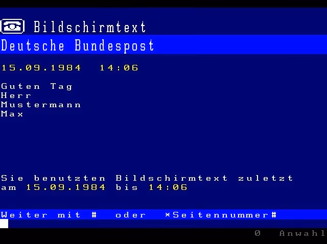 Replikation des BTX Startbildschirms (Credit: Hammi8 vom Heinz Nixdorf Forum Blog)