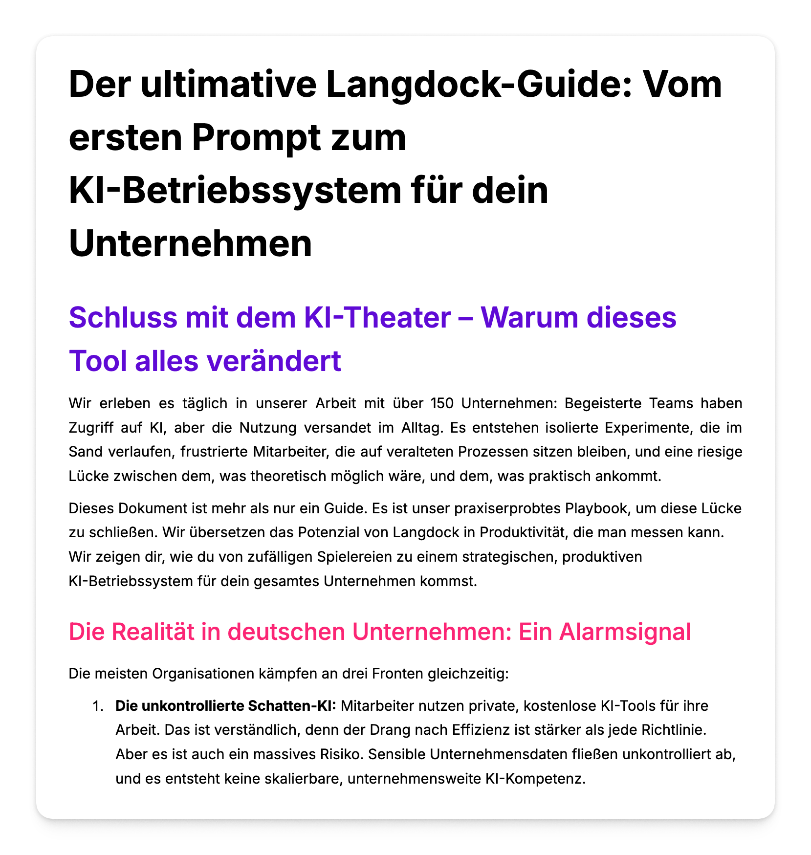 Ein Tool allein schafft keine Transformation. Der Unterschied zwischen "wir haben Langdock" und "wir arbeiten mit KI" liegt in der Einführung. So machen die meisten Unternehmen den selben Fehler: